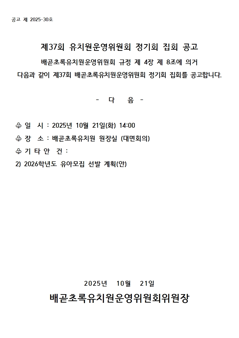 Á¦ 37ȸ Á¤±âȸ °³ÃÖ °ø°í
