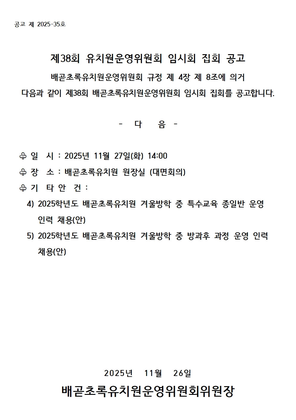 Á¦ 38ȸ ÀÓ½Ãȸ °³ÃÖ °ø°í